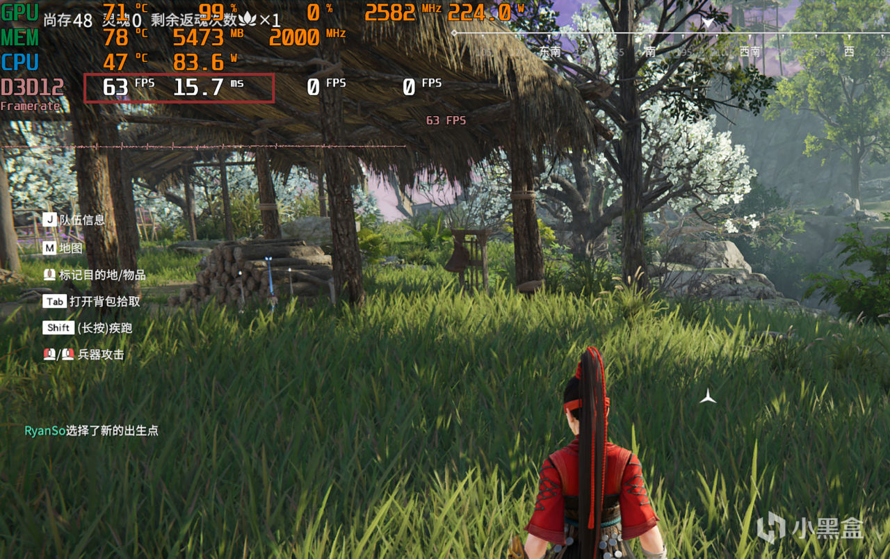 大型武侠版多人吃鸡游戏“永不抢劫”在DX12模式下的平均帧率为63FPS,游戏设置为预设的高画质,已超过60帧的平滑基线。即使在多人混战期间,画面也不会卡顿。如果游戏设置为预设的高画质,游戏的帧率将提高到82FPS。