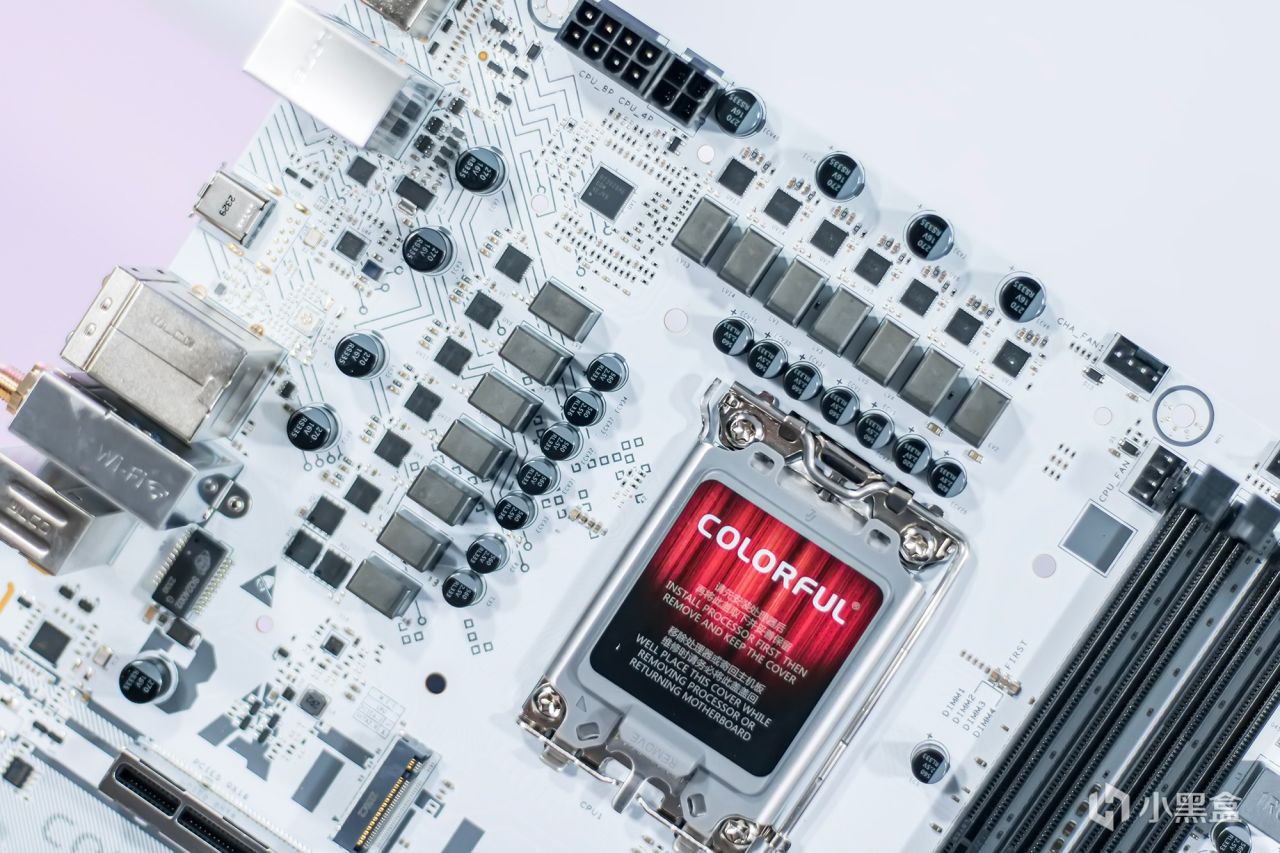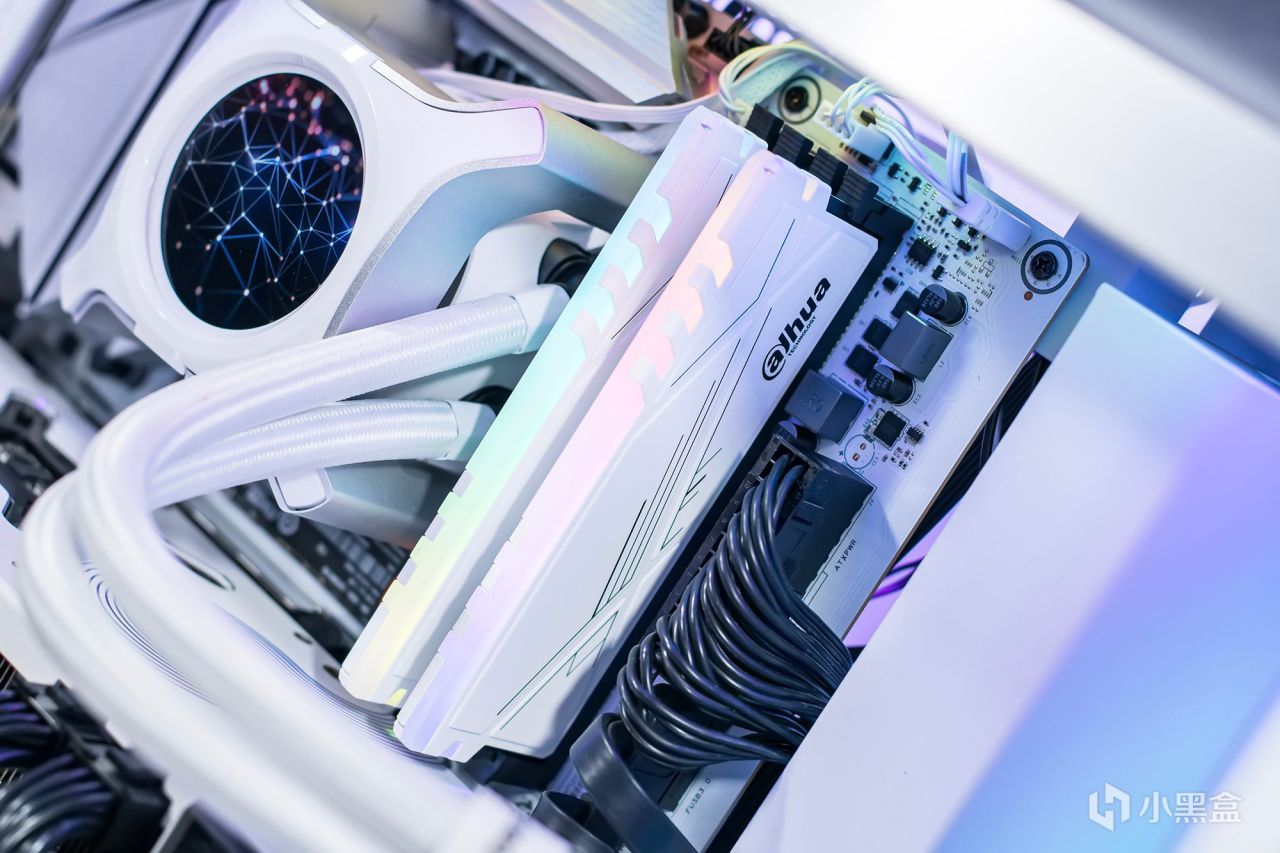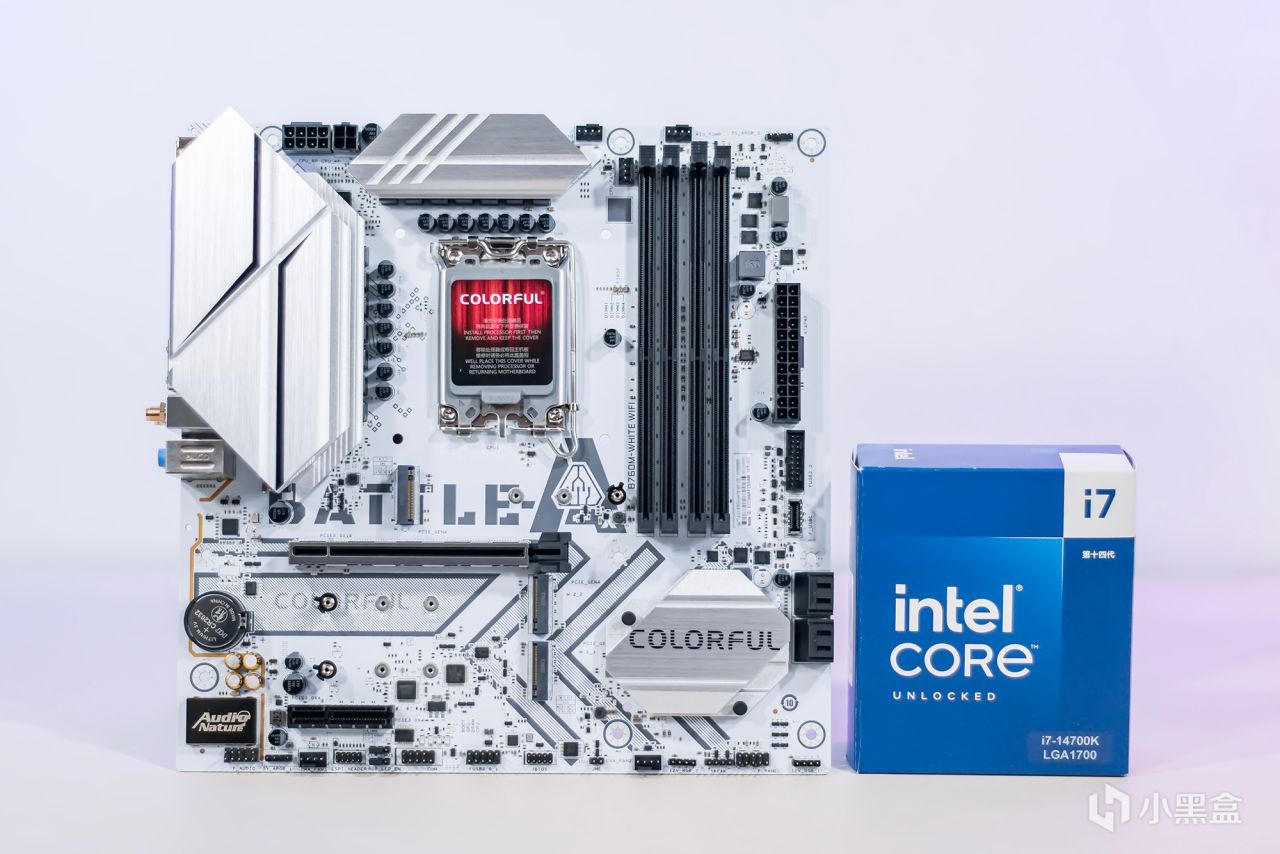 360水冷散热器、机箱、内存条和独立显卡都属于白色风格设计,整体效果与白色主板非常融合。特别是RGB风扇的动态灯光效果可以更好地适应纯白风主机。多彩的BATTLE-AX B760M-白色WIFI V20主板配备了LGA 1700处理器插槽,可兼容第12代、第13代和第14代英特尔酷睿处理器。