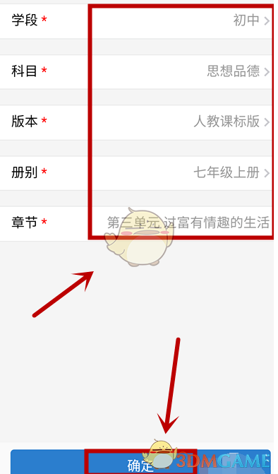 4。进入[选择章节]页面后,选择各种项目并单击[确定]。