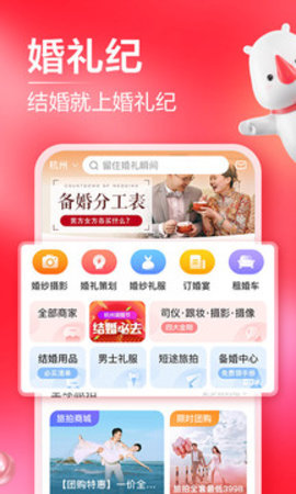 婚礼纪梦婚礼app为大家带来一场难忘的婚礼,里面可以进行很多的操作,无论是订酒店还是婚纱摄影等等相关的一系列东西都可以在其中找到,每个人一辈子都会有一场难忘的婚礼,有了这款app让你更加的轻松愉快,很多的相关的事宜都可以在去里面找到查看。