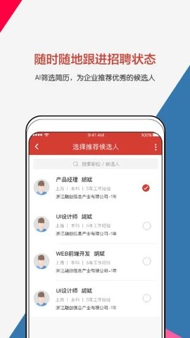 3、明确职位需求,识别人才简历,一键联系,降低沟通成本。