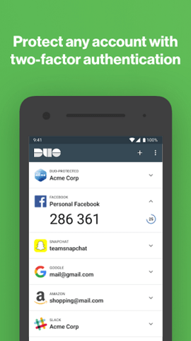 duo mobile是一款网络移动管理的手机软件,实现在手机上进行各种系统管理或者程序验证,能够为用户扫描病毒及添加第三方账户,自动拦截一切入侵的病毒,双因素认证服务,身份验证、动态设备信任、自适应身份验证以及为每个用户和设备提供安全的单一登录,让登录更加安全,该应用程序生成登录密码,并可以接收推送通知,使用起来更加安全!